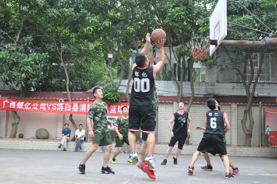 为了增进广西银亿公司与博白县消防大队的友谊,2015年11月09日星期一下午,由党工团联合组织的军民联谊活动;第二届广西银亿公司vs博白县消防大队篮球友谊赛在博白县消防大队篮球场拉开帷幕,广西公司党委委员章群宏、工会副主席李国昌、团委副书记朱旭波均现场助威!广西银亿公司篮球队派10名队员参加比赛,公司拉拉队到场助阵。
