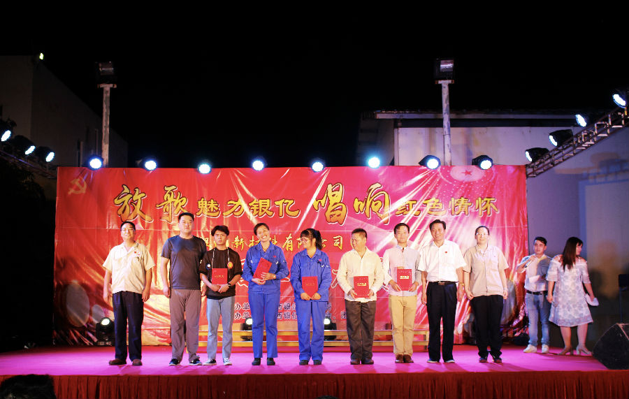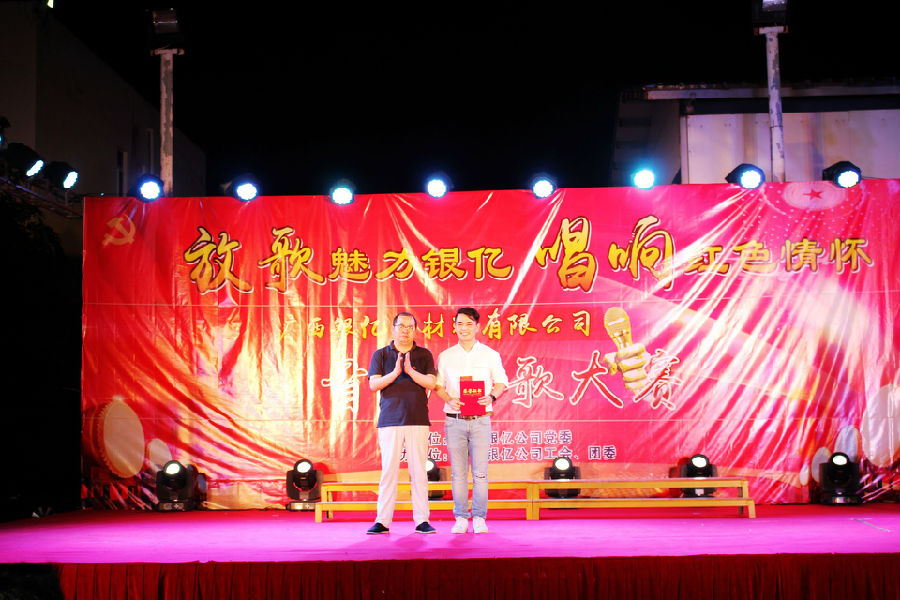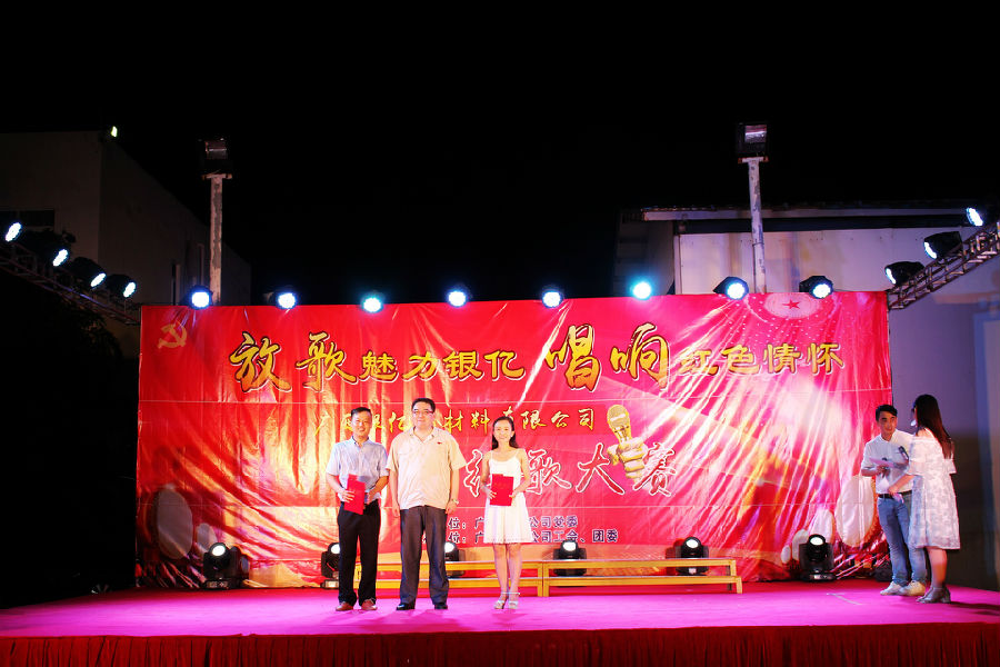 比赛竞争激烈,精品迭出,最后,浸出车间的《我的中国心》、镍盐车间张响的《中国人》、装备部的合唱《团结就是力量》、品管部廖永万的《少年壮志不言愁》、研发部李炳强的《万里长城永不倒》获得三等奖。品管部冯春莲的《走进新时代》、销售部黎波的《血染的风采》演唱感人至深,荣获二等奖。采购部朱旭波的《红旗飘飘》将现场气氛点燃至高潮,最终抱得冠军!